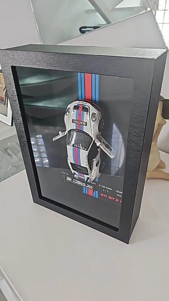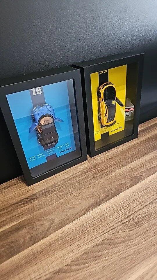 Simplemente coloca el cuadro en la pared con el soporte incluido: cuelgas y queda listo. Las puertas de los coches 3D se pueden abrir, lo que permite tocar o mirar detalles. Perfecto para decoración.
