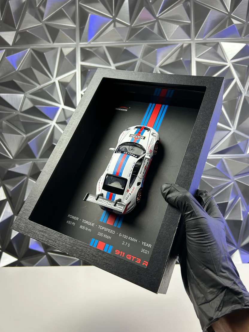 Cada cuadro cuenta con un efecto 3D que resalta los detalles más finos del vehículo: curvas, faros, carrocería y profundidad. El relieve simula volumen real y único.